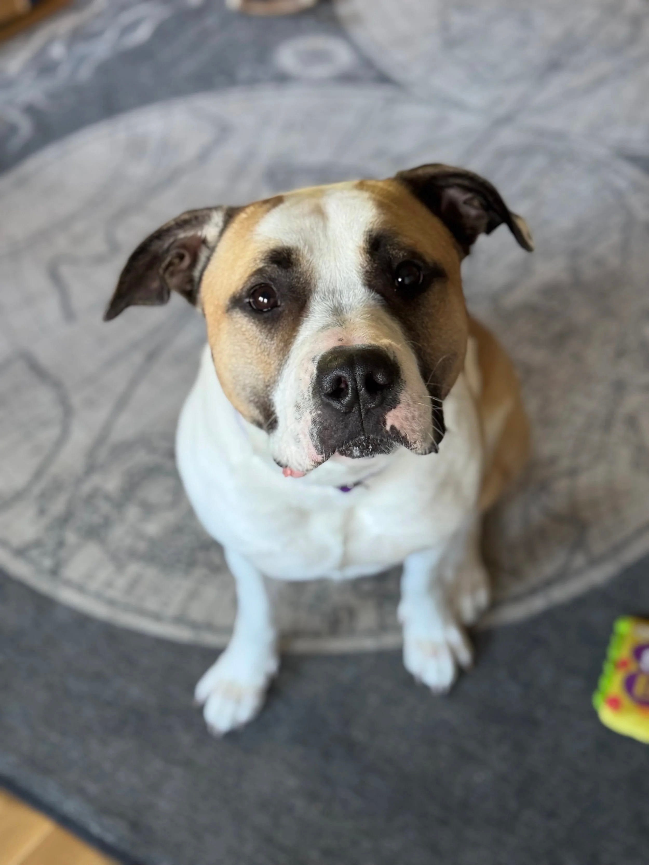 Toby is about 4-years old. A Pitbull-French bulldog mix with a lot of spirit, strong Yang Qi and all about play!